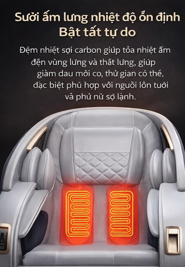 Ghế mát xa Katasuma KS886 được trang bị công nghệ Smart Heat giúp cải thiện, lưu thông máu. Ngoài ra việc tác động nhiệt còn giúp cho cơ thể giữ một nhiệt lượng tốt, giúp phòng chống và ngăn ngừa các vấn đề về căng cứng cơ, tê mỏi tay chân ở người lớn tuổi, nhất là những người ở các vùng có khí hậu lạnh.