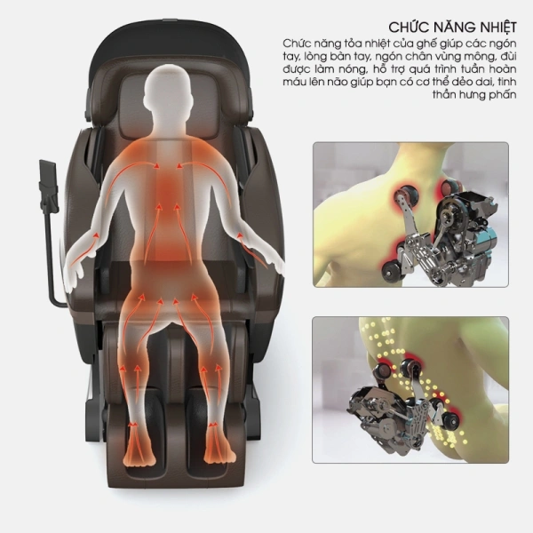 1. Ghế KATASUMA S6 LUXURY kết hợp MASSAGE và nhiệt lượng giúp giảm viêm, giải tỏa đau nhức, đồng thời làm mềm các mô mềm xung quanh khớp để tăng độ linh hoạt.